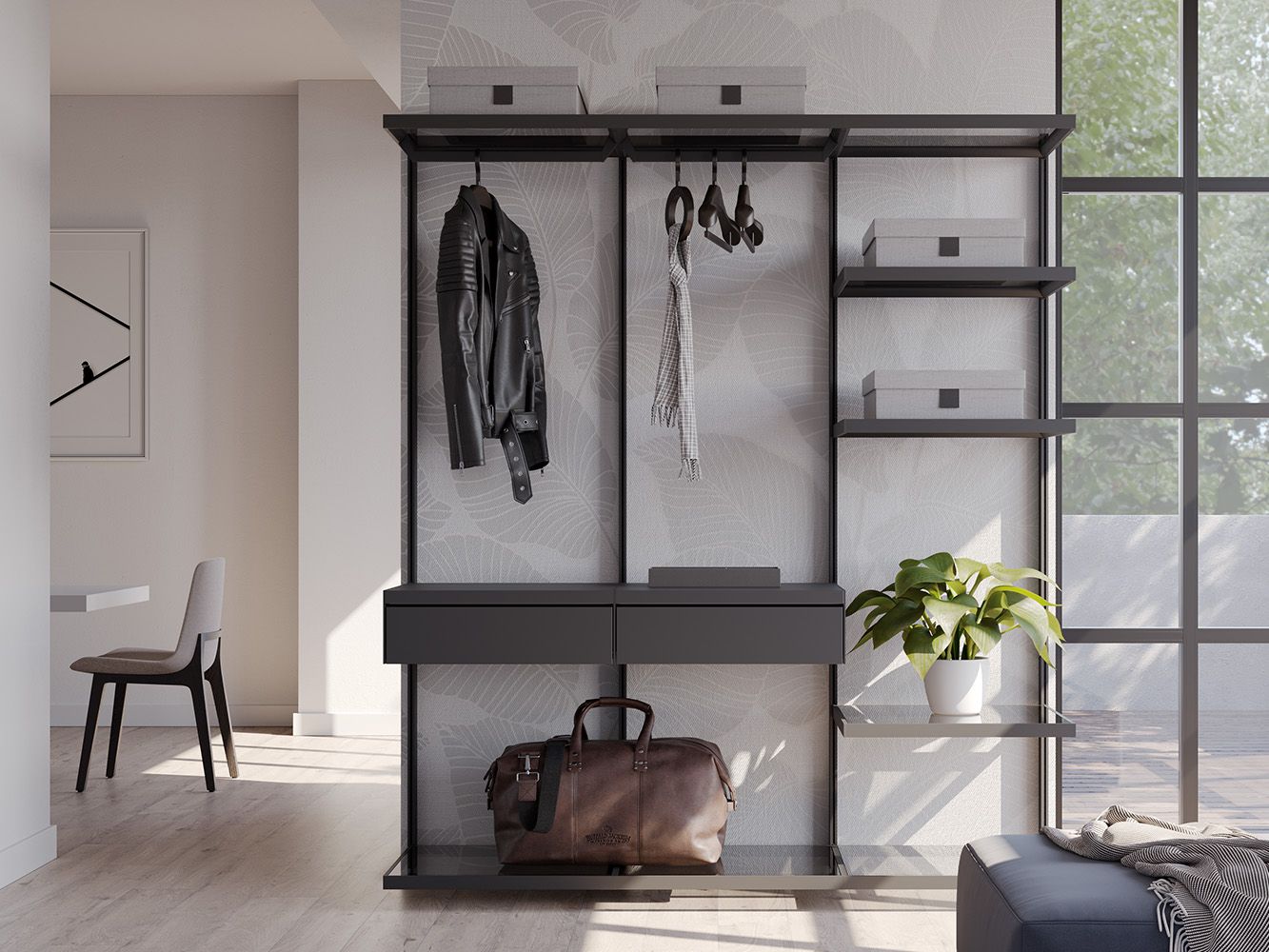 Sustav vam omogućuje organizaciju osobnih predmeta sa stilom, zahvaljujući modularnosti koja jamči prilagođena rješenja za svaku potrebu. S Luxerom možete stvoriti rješenja po mjeri za garderobe s visokim estetskim i funkcionalnim učinkom. Savršeno se prilagođava dnevnim prostorima, nudeći funkcionalne kompozicije profinjenog dizajna.