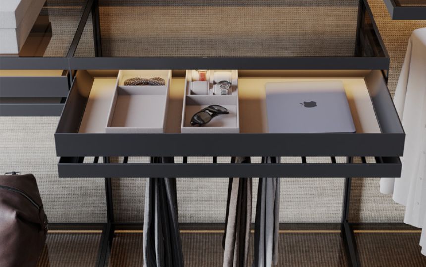 Sustav je upotpunjen kolekcijom Excessories, nizom profinjenih namještajnih dodataka koji oživljavaju ekskluzivne ormare, dizajnerske police za knjige i mnoge druge personalizirane komade namještaja.