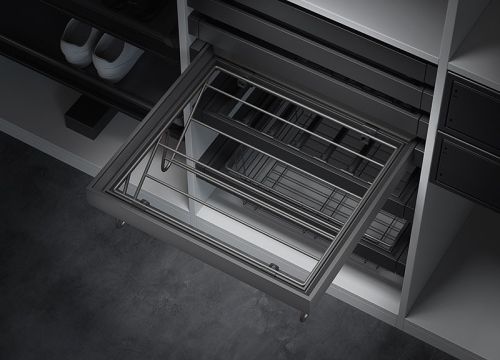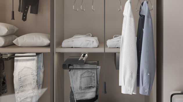 Izvlačni držač hlača preglednošću olakšava svakodnevni odabir.