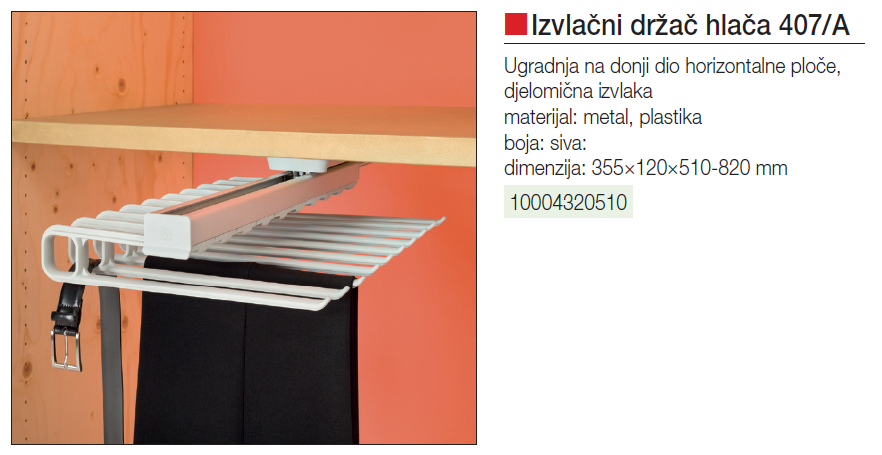 Ugradnja na donji dio horizontalne ploče.Djelomična izvlaka.Dimenzija: 355×120×510-820 mm