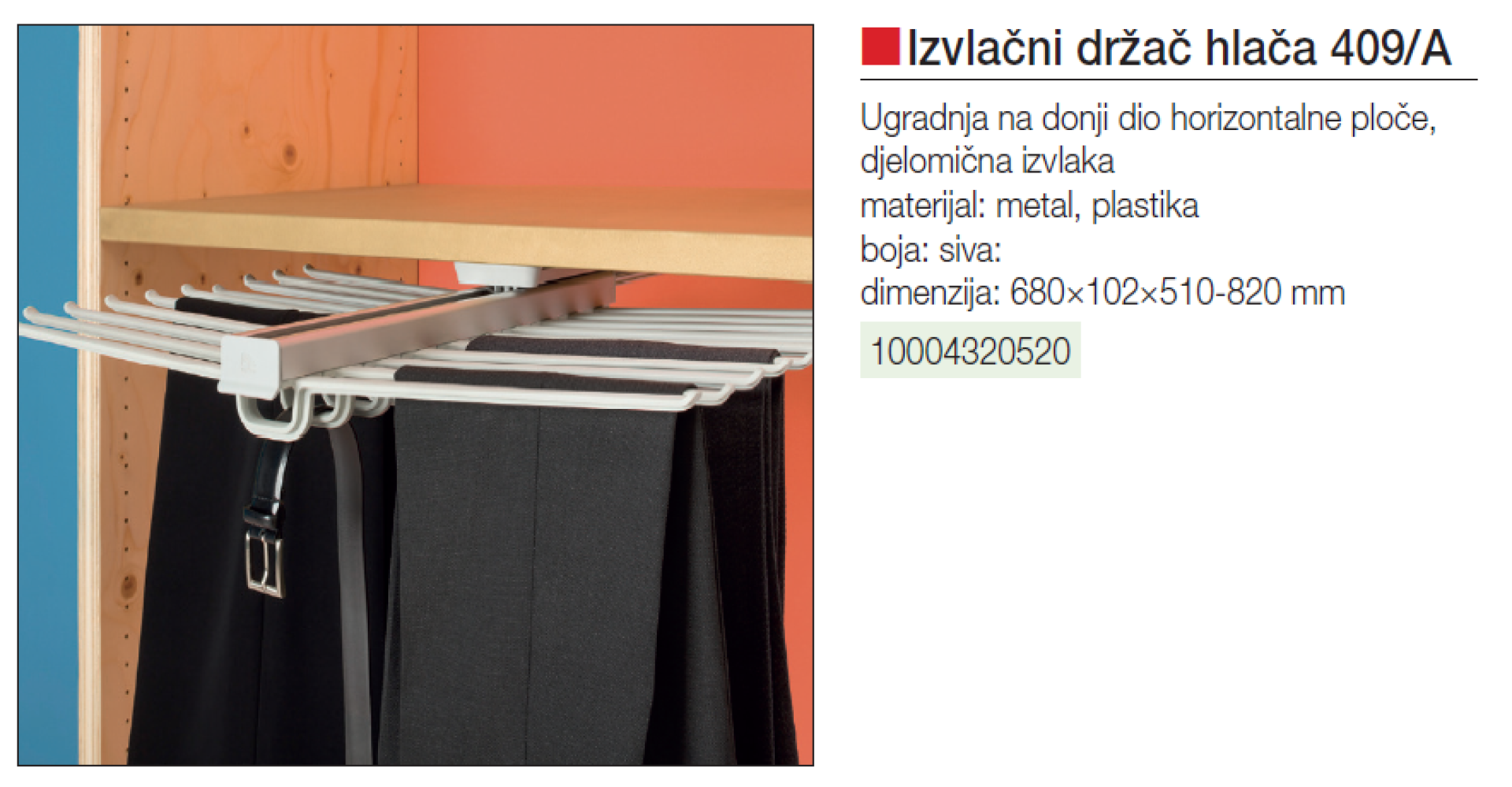 Ugradnja na donji dio horizontalne ploče.Djelomična izvlaka.Dimenzija: 680×102×510-820 mm