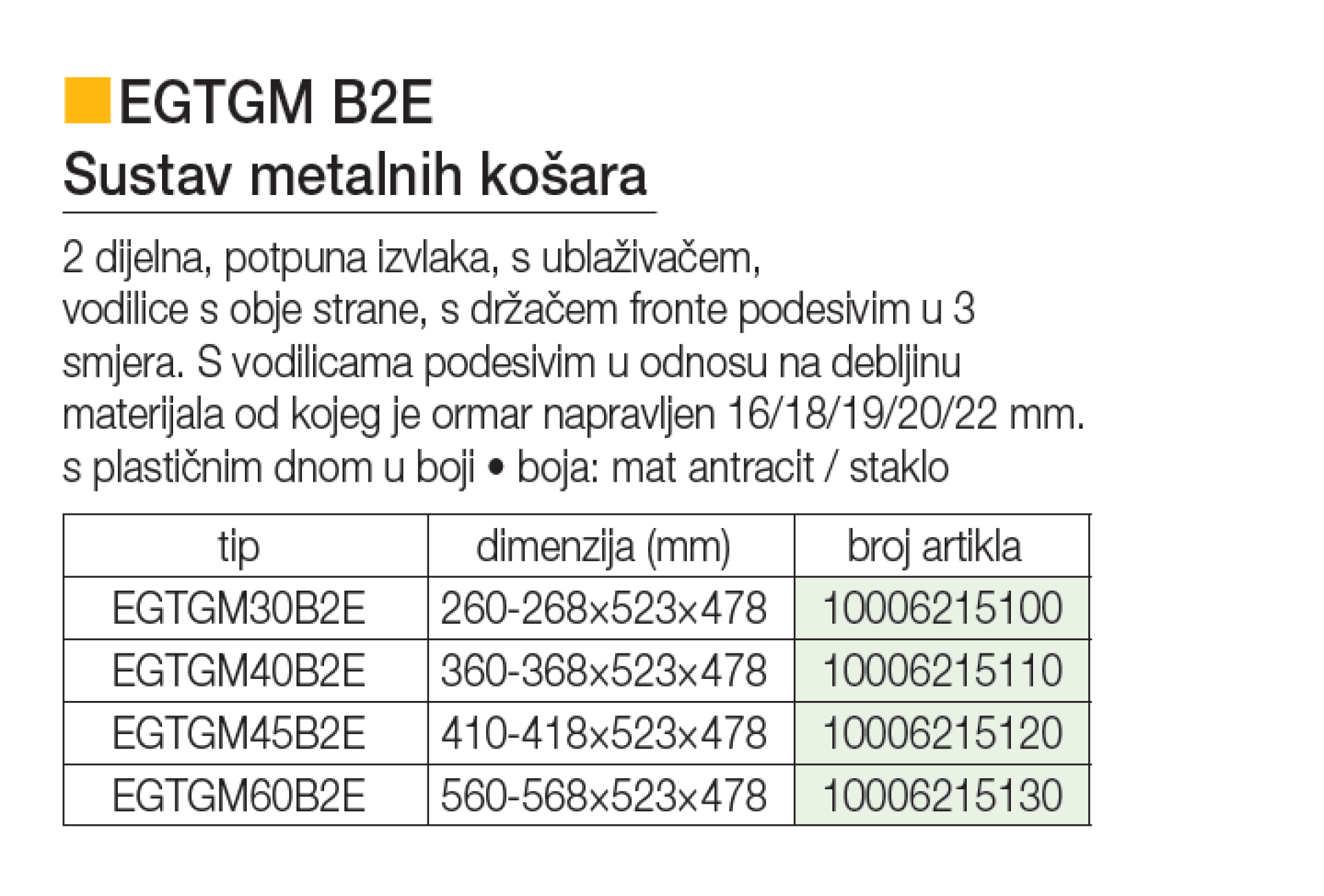 Vibo Essence - sustav izvlačnih košara 300 - 600mm