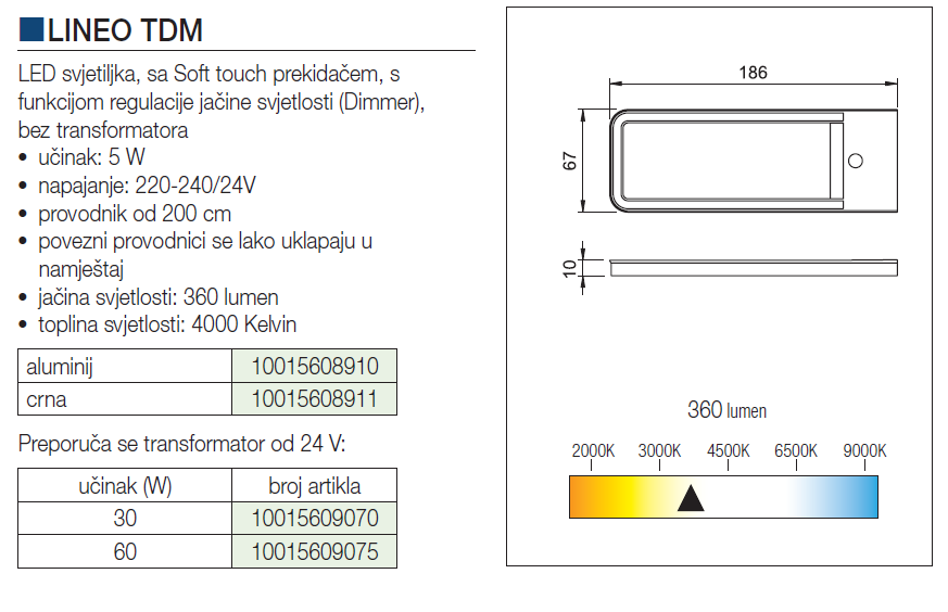 LED svjetiljka, sa soft touch prekidačem, s funkcijom regulacije jačine svjetlosti (Dimmer)