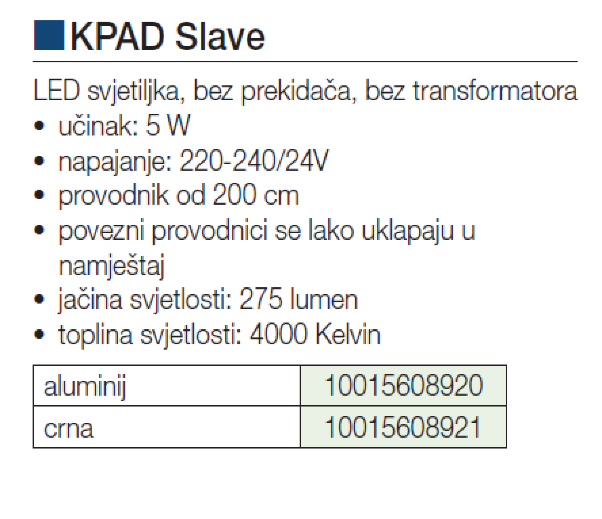 K-PAD rasvjeta 5W NW