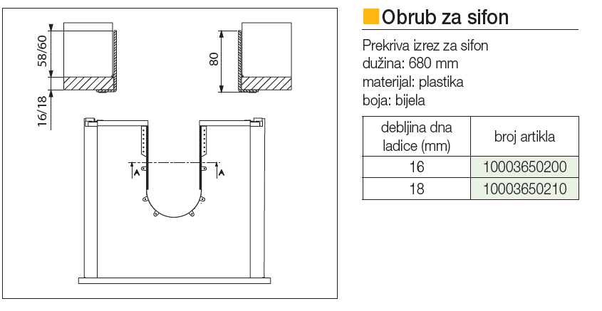 Obrug za sifon olakšati će Vam ugradnju ladica u kupaonskim elementima.Dostupan je za debljine dna od 16 ili 18mm.