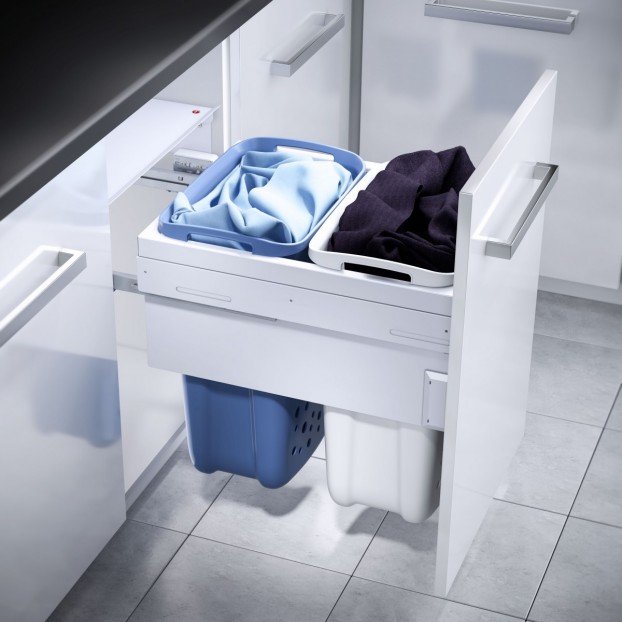 HAILO LAUNDRY košara za rublje predstavlja praktičnu opciju koja štedi prostor i vrijeme! Može se ugraditi u ormare od min. 45cm širine pa sve do 60 cm u širinu, a dva odvojena, prostrana spremnika olakšavaju sortiranje rublja!