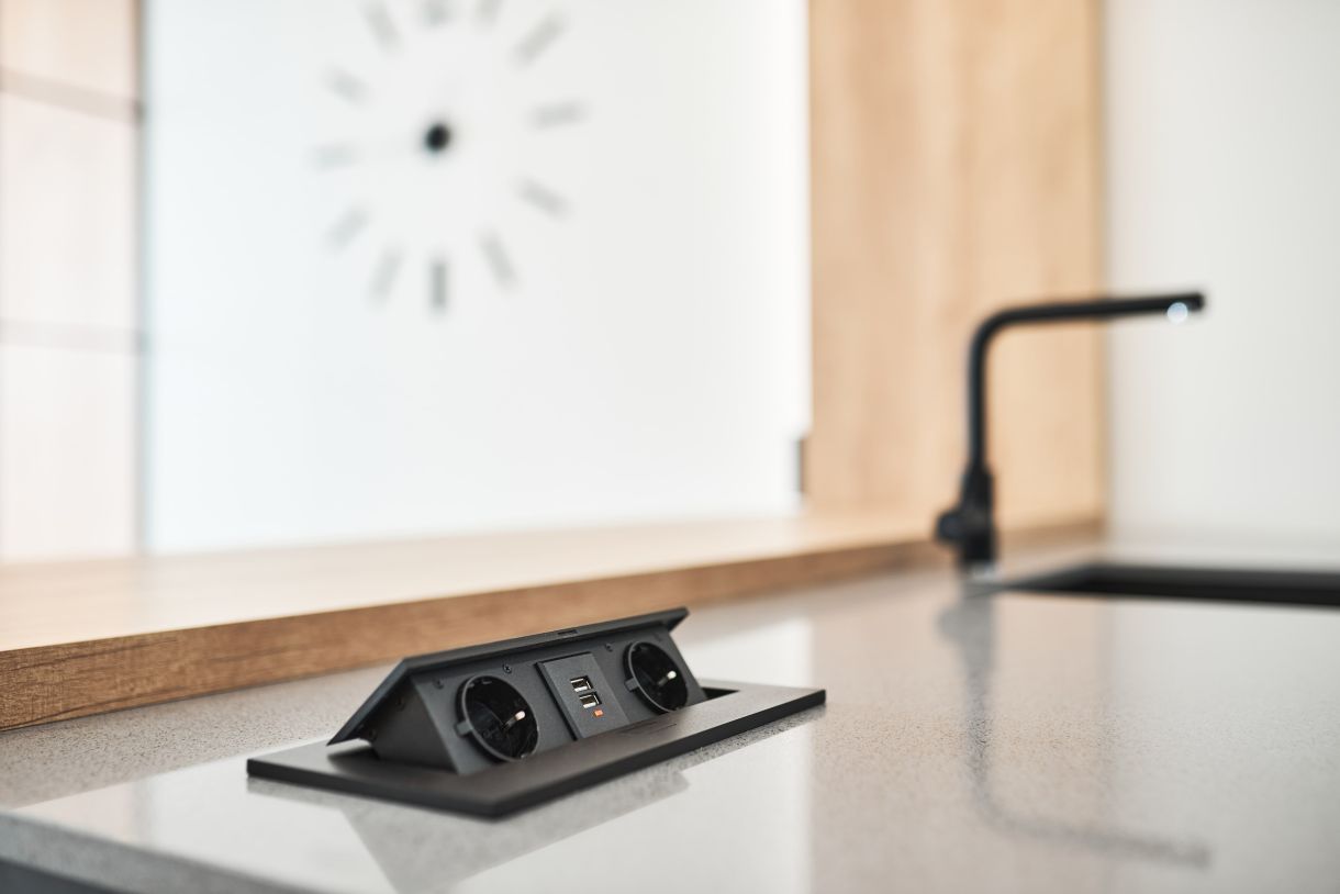 Preklopne utičnice postaju neizostavni dio u kuhinji zbog toga što se s njima dobiva čisti i moderniji izgled kuhinje.