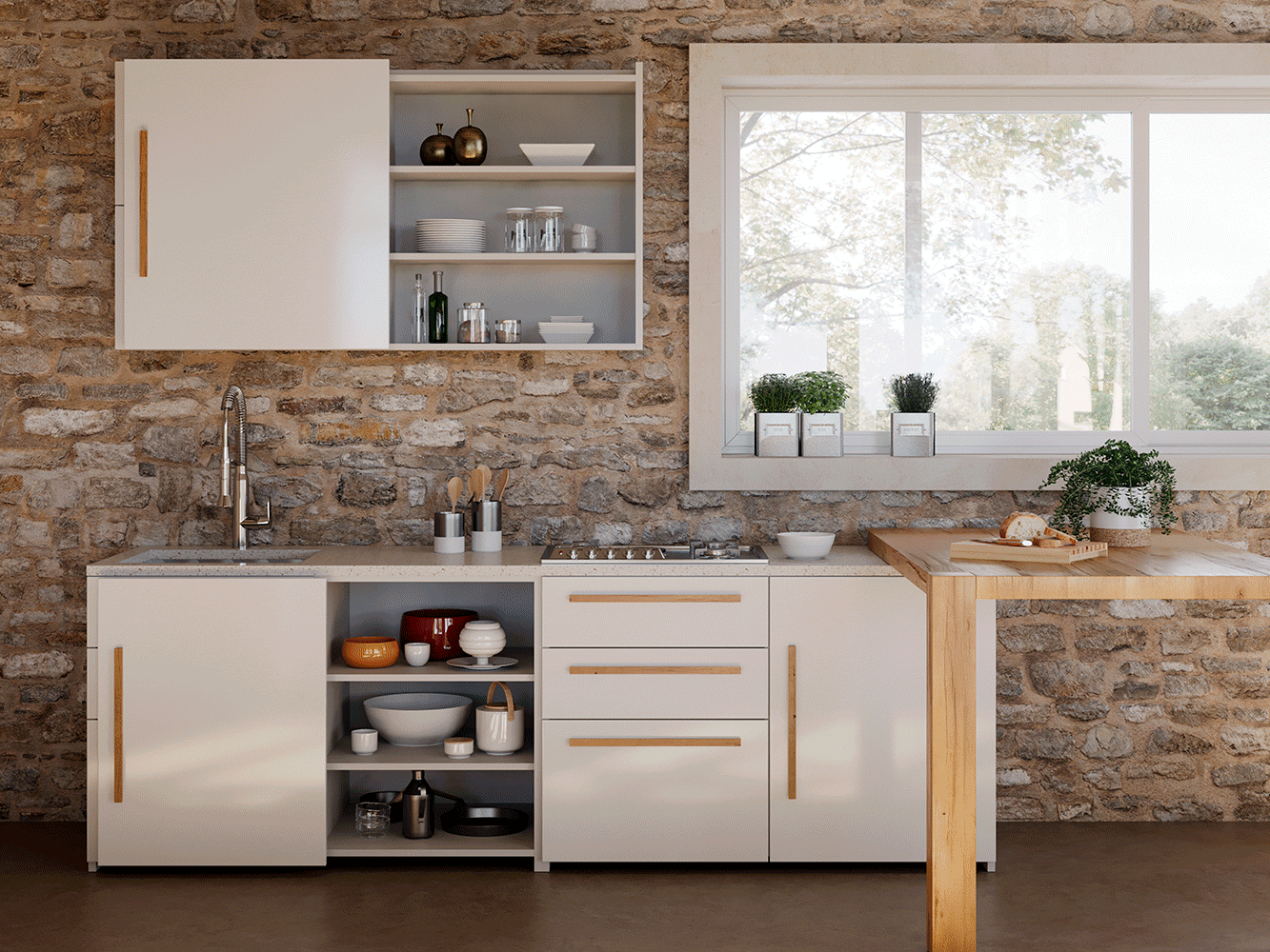 Coplanarni sustav za kuhinjske ormariće i manje zidne elemente, dizajniran za vrata mase do 10 kg.