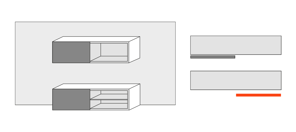 Coplanarni klizni sustav za viseće ormariće srednje visine s vratima težine do 35 kg
