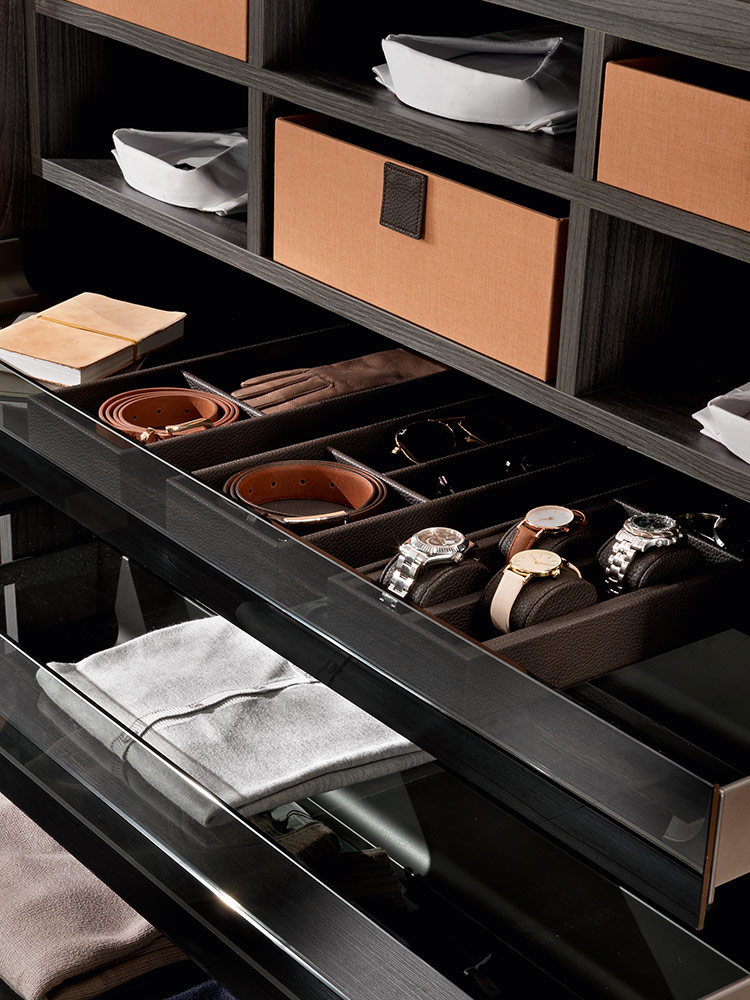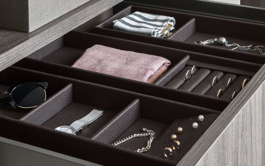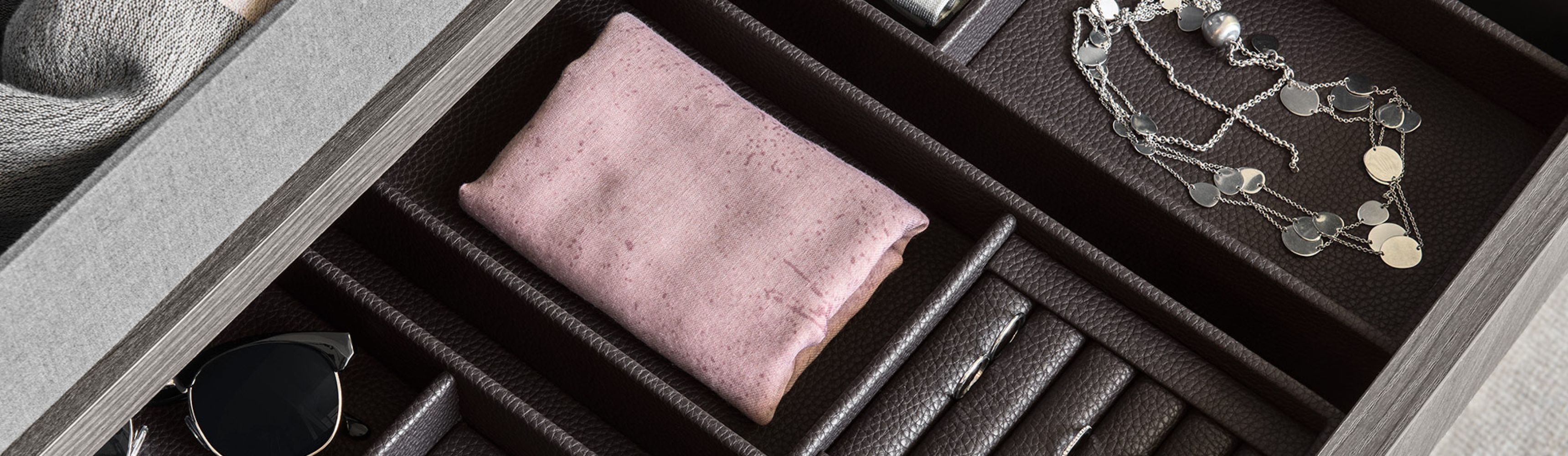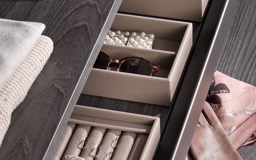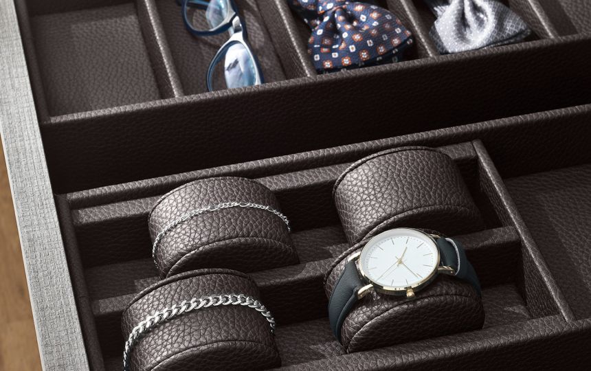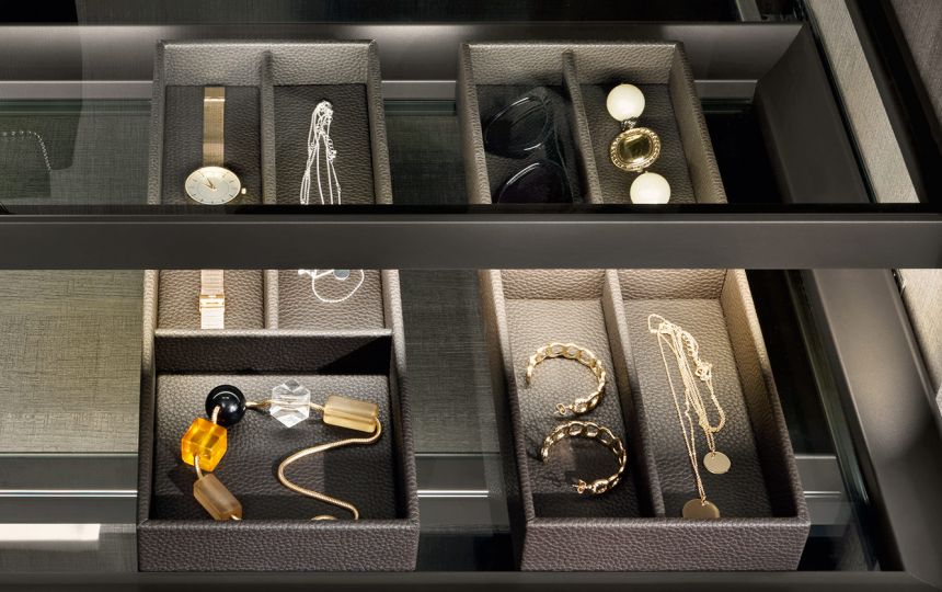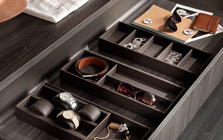 Kolekcija posebno uključuje umetke za satove, držače za naočale, držače za prstenje i naušnice, izrađene od kože, dostupne u raznim bojama i dimenzijama, prema individualnim estetskim i funkcionalnim zahtjevima.