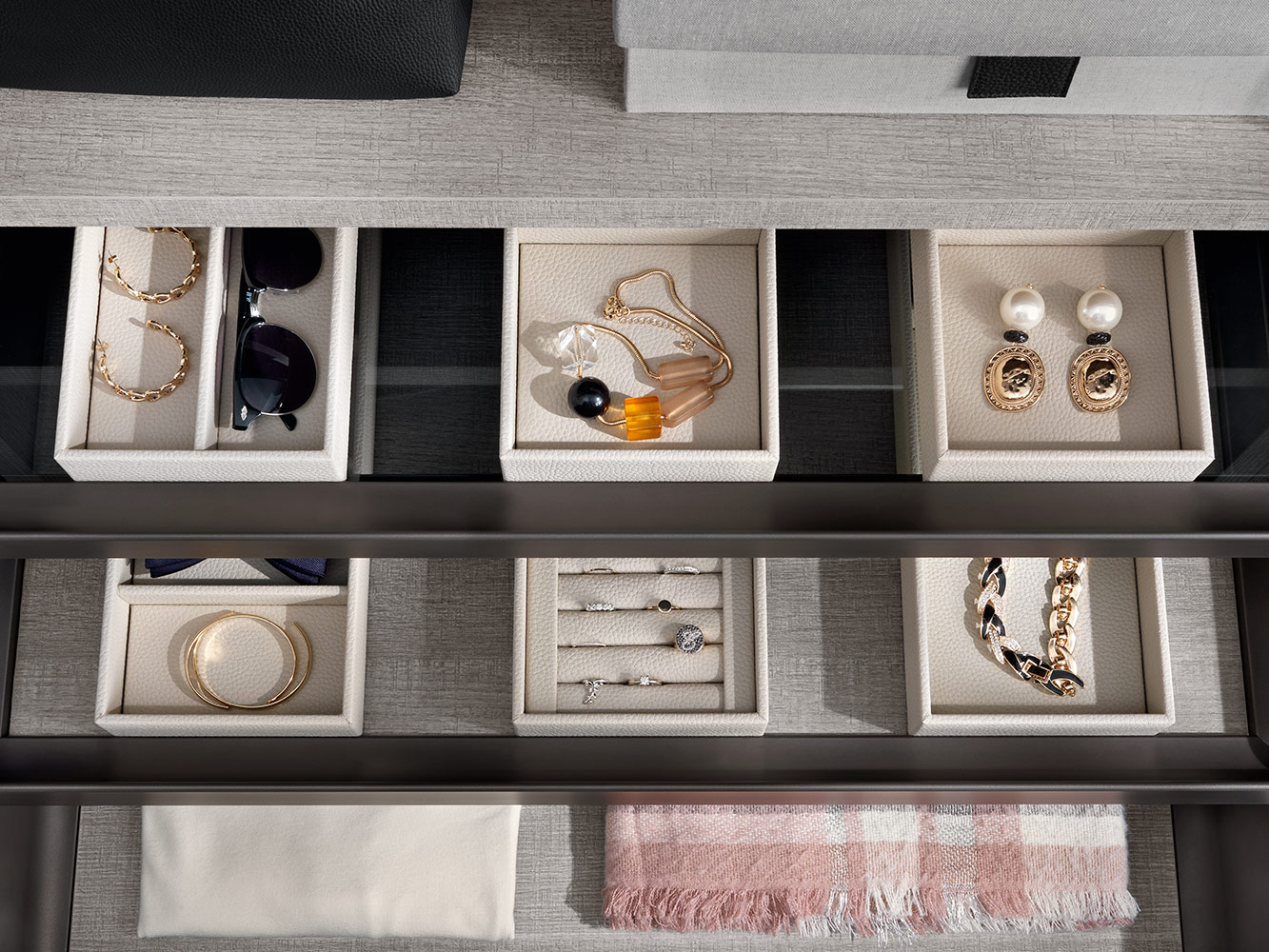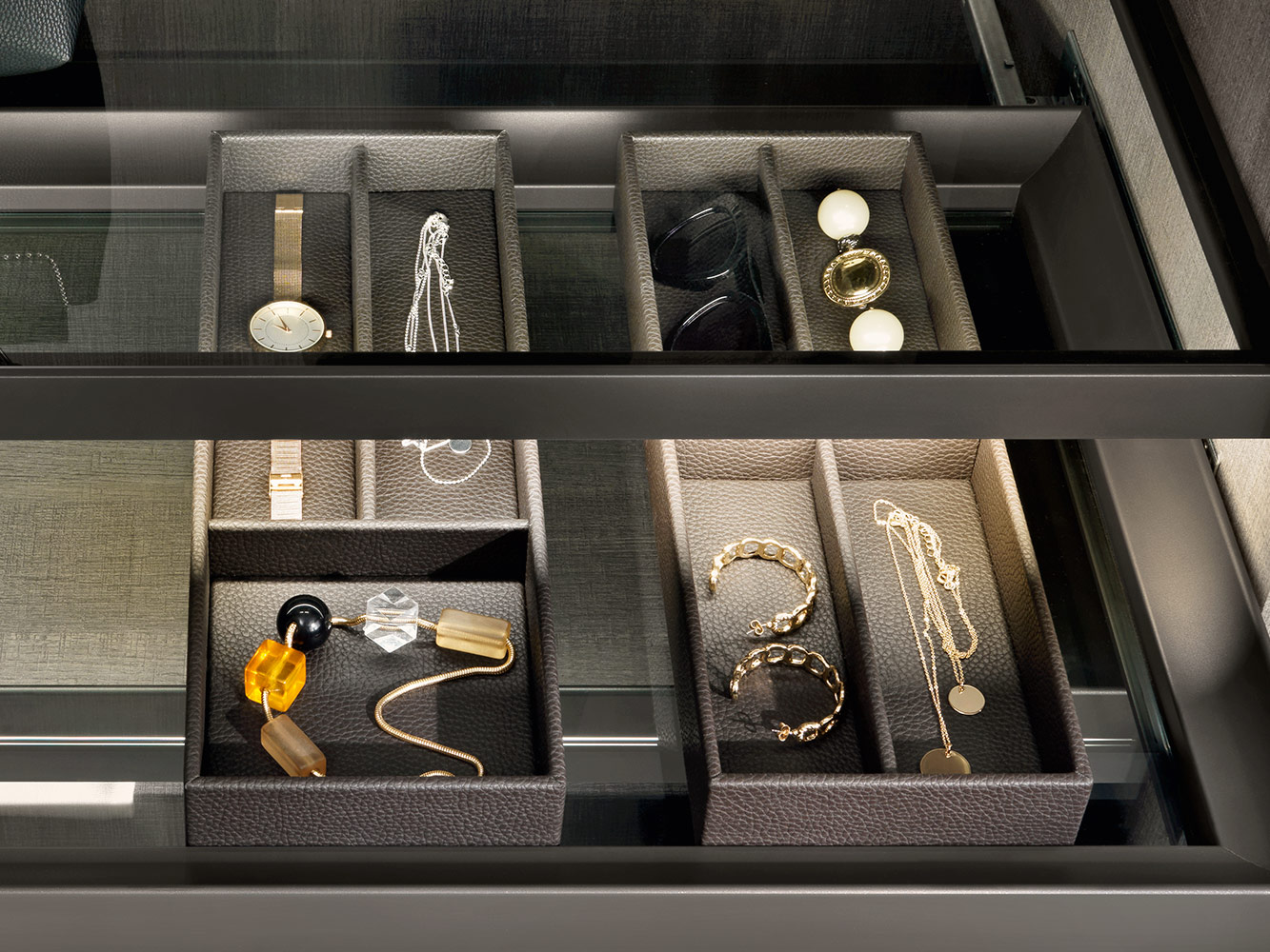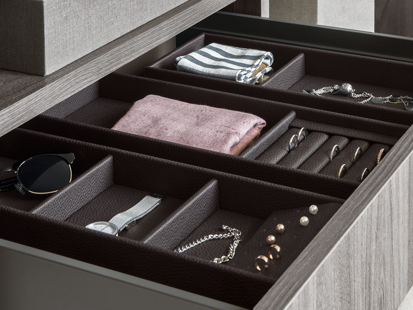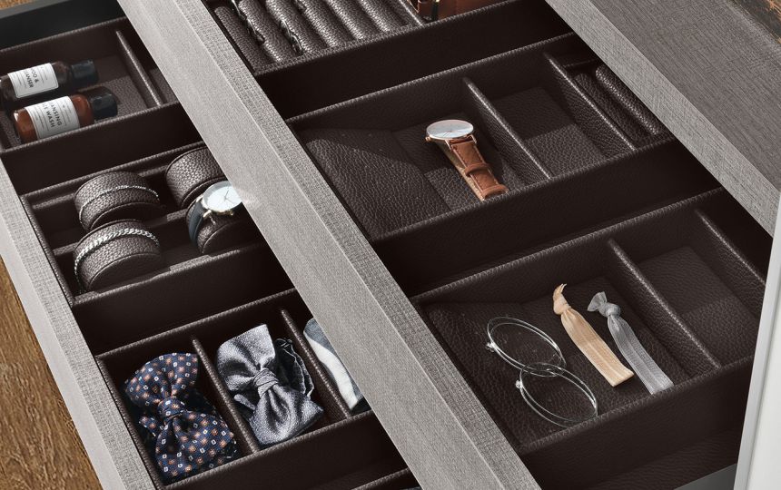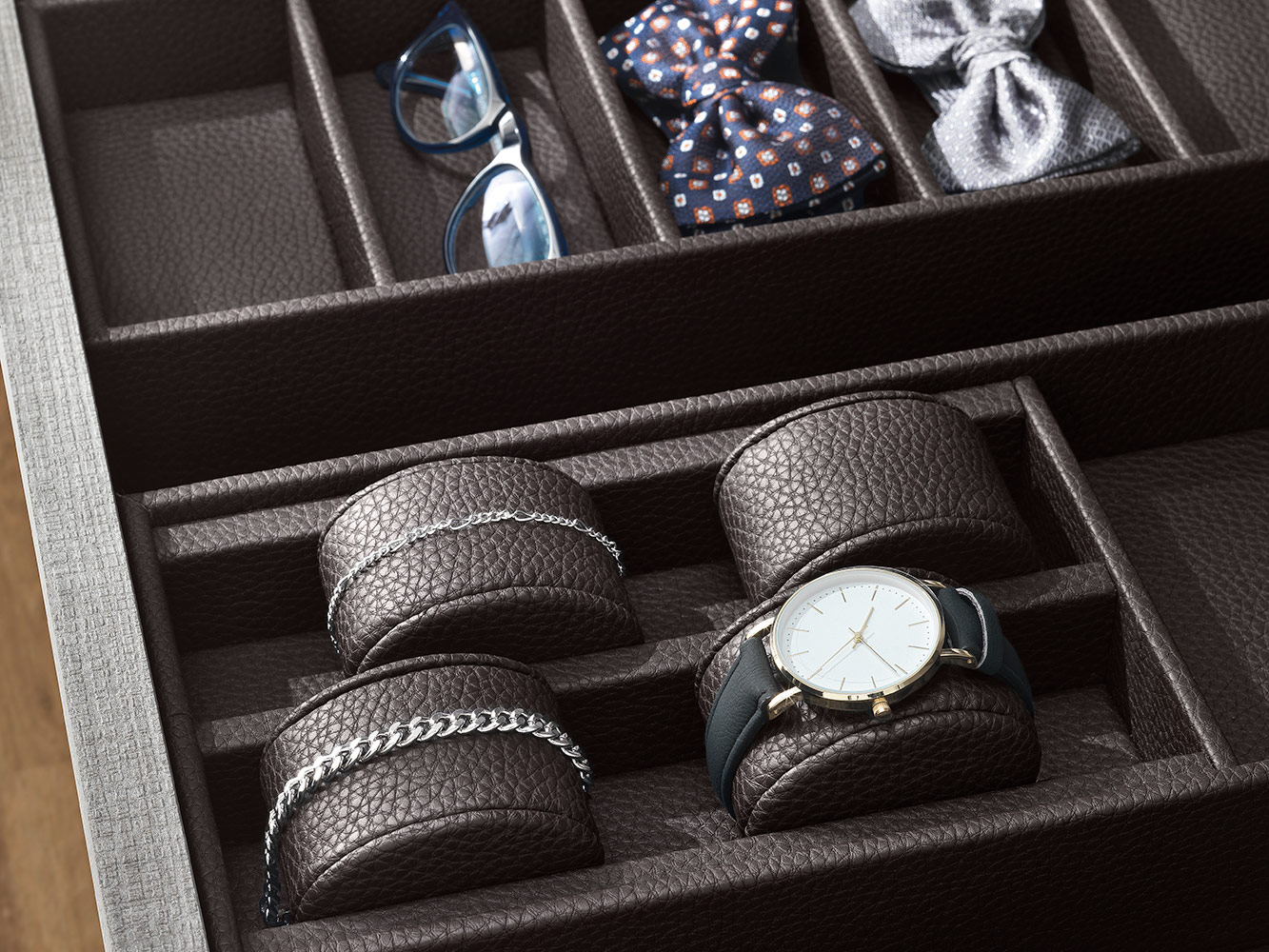 Kolekcija posebno uključuje umetke za satove, držače za naočale, držače za prstenje i naušnice, izrađene od kože, dostupne u raznim bojama i dimenzijama, prema individualnim estetskim i funkcionalnim zahtjevima.
