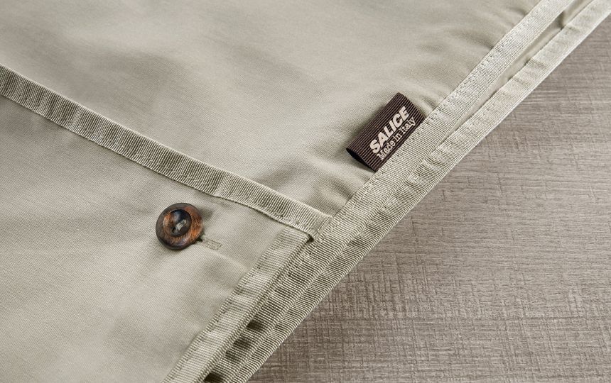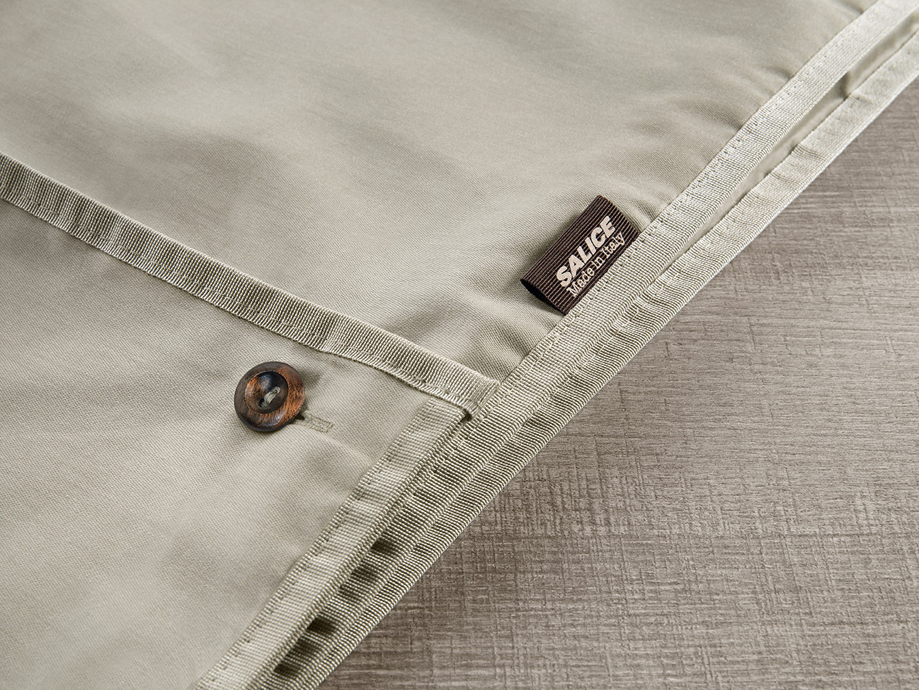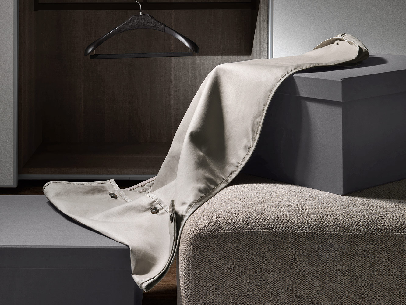 Vreća za kapute s naborima. Gumbi izrađeni od maslinovog drva bajcanog u wenge nijansu