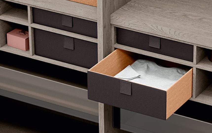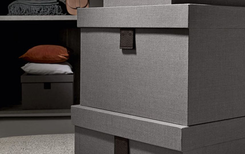 Kutije i ladice za odjeću ili druge predmete, obložene elegantnom tkaninom, omogućuju organizaciju unutarnjeg prostora te ga obogaćuju tonovima i bojama.