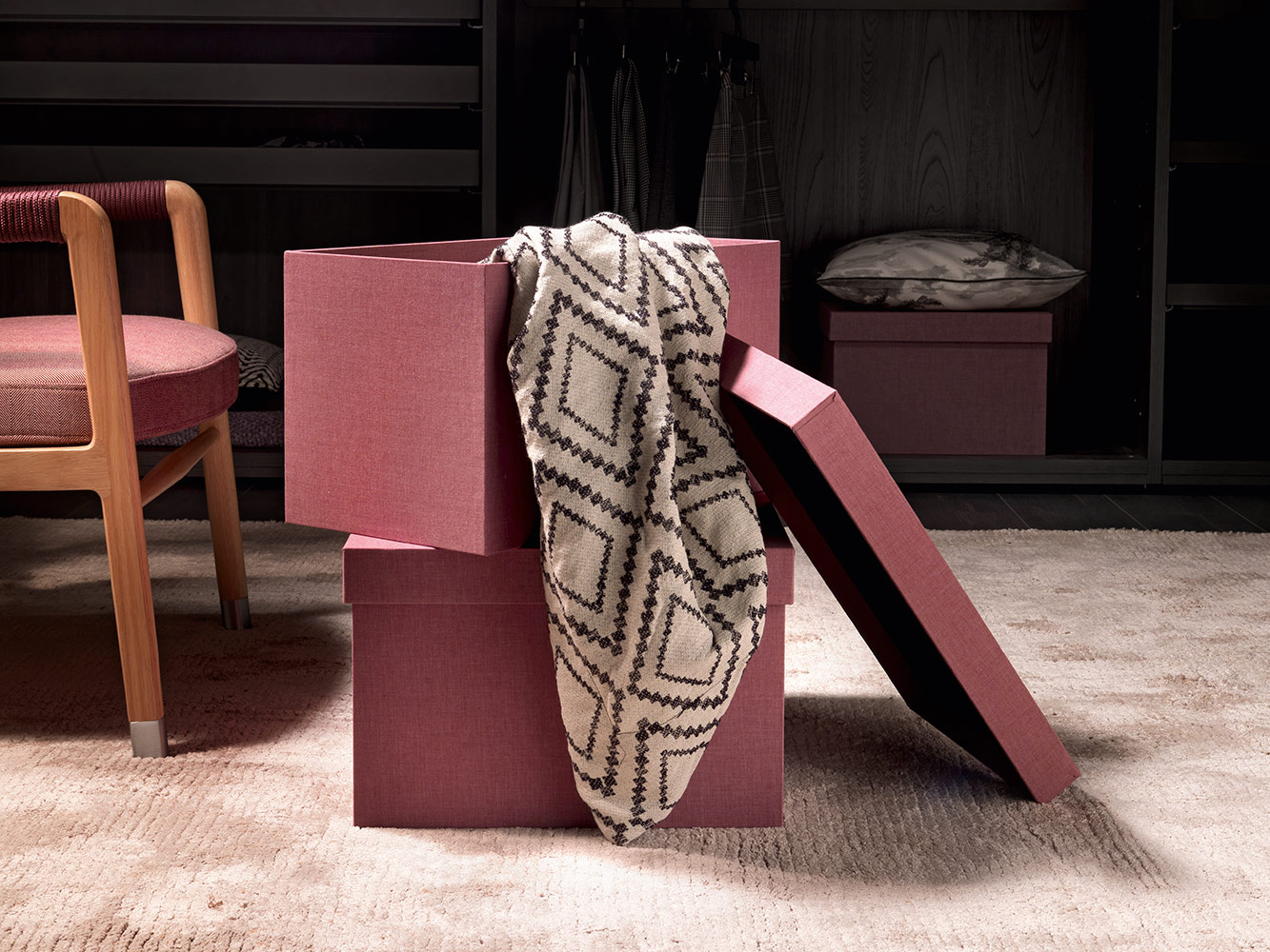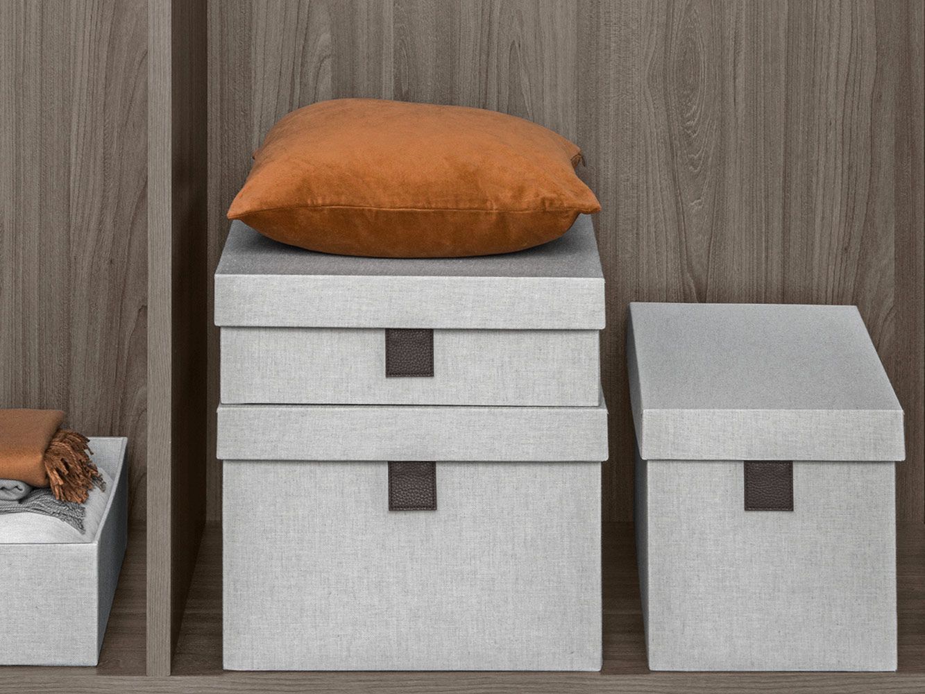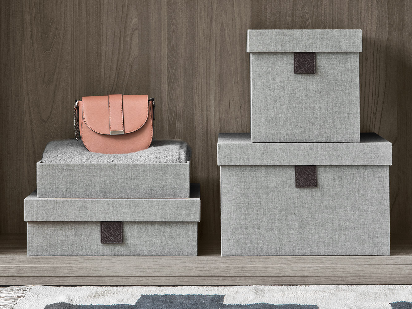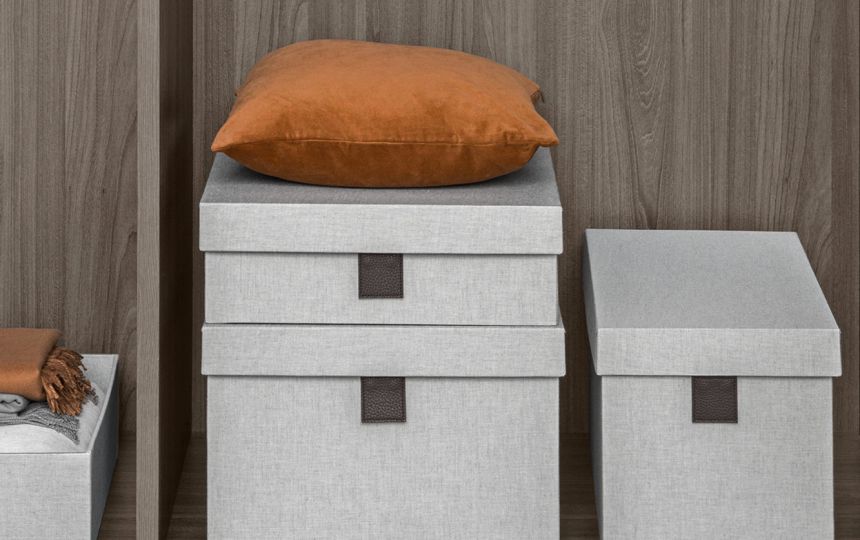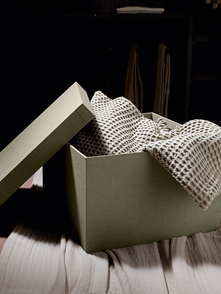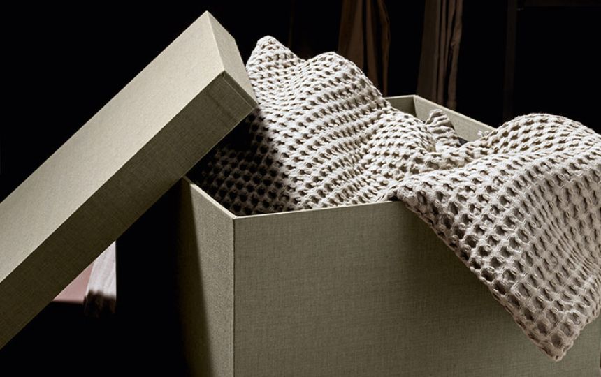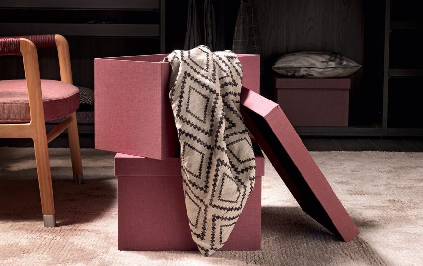 Kutije za odjeću ili druge predmete, presvučeni elegantnom tkaninom, omogućuju organizaciju unutarnjeg prostora i oplemenjuju ga tonovima i bojama.