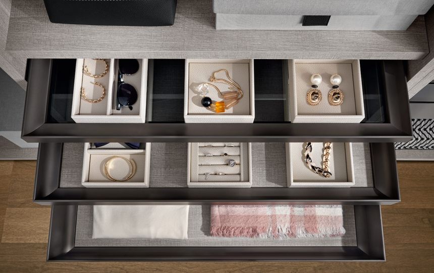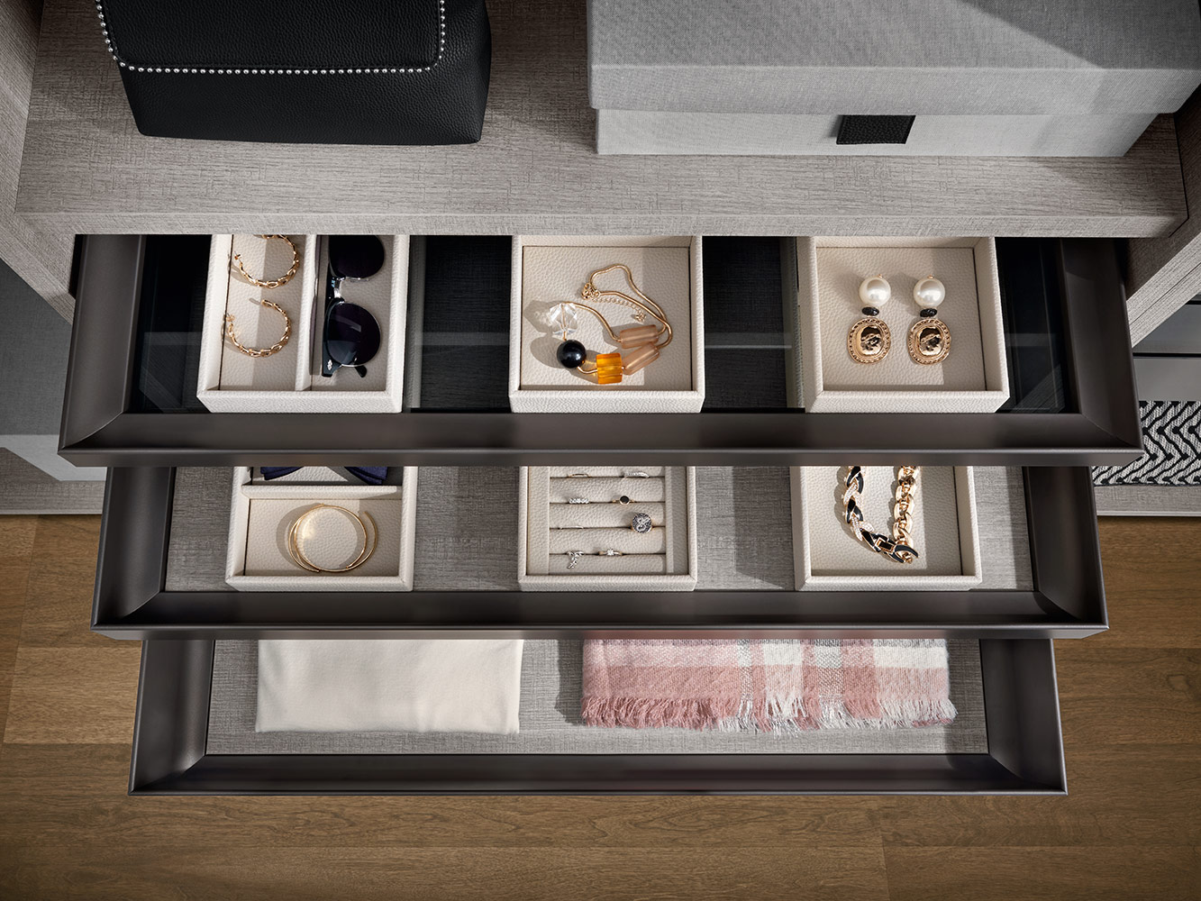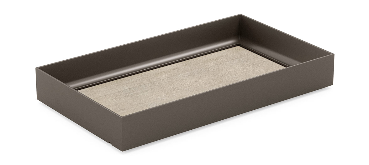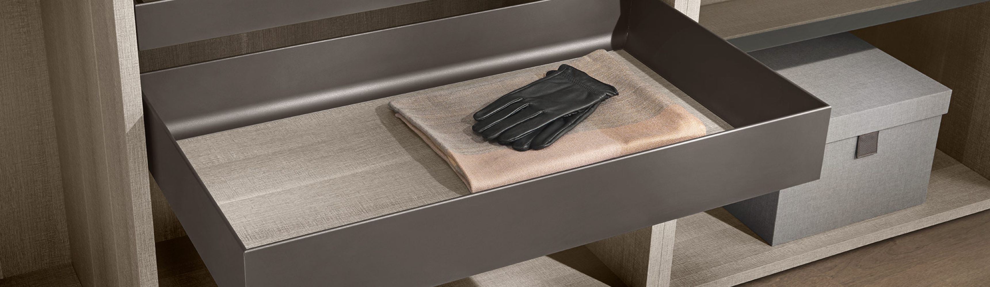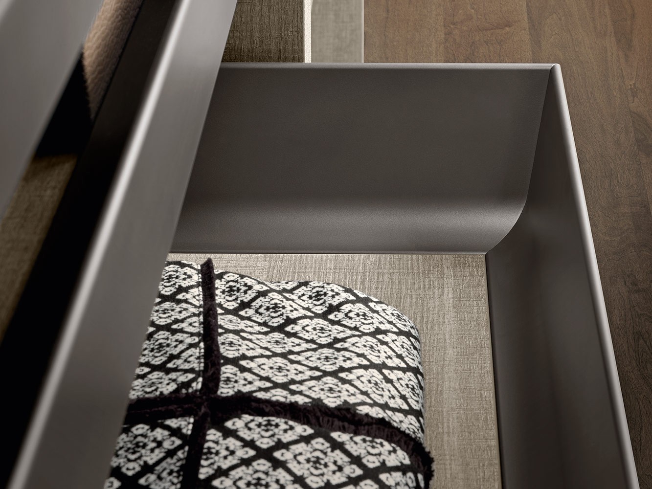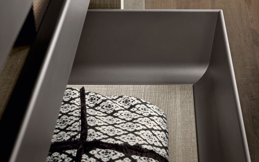 Ladice od aluminija s 4 strane, karakterizirane elegantnim linijama i futurističkim stilom, dolaze s dnom od drva, stakla ili umjetne kože. Klasična sinteza tehnološkog razvoja i dizajna, ističu se elegancijom profila, savršenom estetikom te glatkim i zaobljenim oblicima, koji osim estetske vrijednosti omogućuju i jednostavno čišćenje dna ladice.