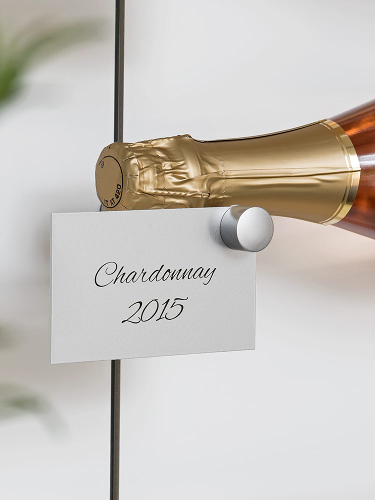 Pin Vino također je opremljen informacijskom etiketom na koju se mogu upisati opis vina i njegove karakteristike. Etiketa se savršeno integrira u sustav za pohranu izložbenih predmeta.
