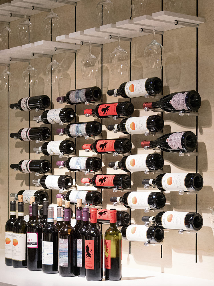 Izuzetno fleksibilna i inovativna kombinacija Pin Vino nosača omogućava "po mjeri" prilagodbu, koristeći standardne, male, pa čak i "magnum" boce.