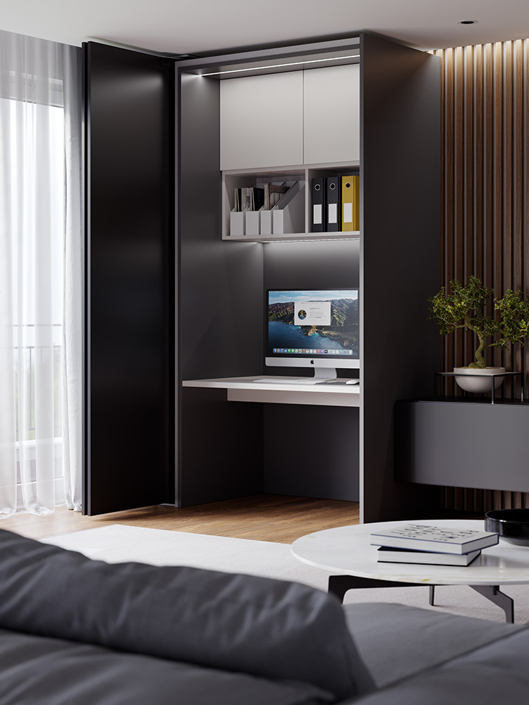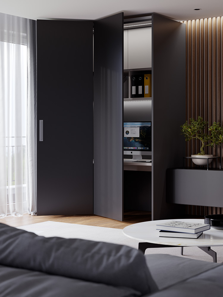 Sustav se može koristiti u mnogim aplikacijama kako bi omogućio značajnu funkcionalnu optimizaciju prostora, od garderoba s pristupom s dvije strane do spremišta za kuhinje, rješenja za kućne urede i skladišne primjene.