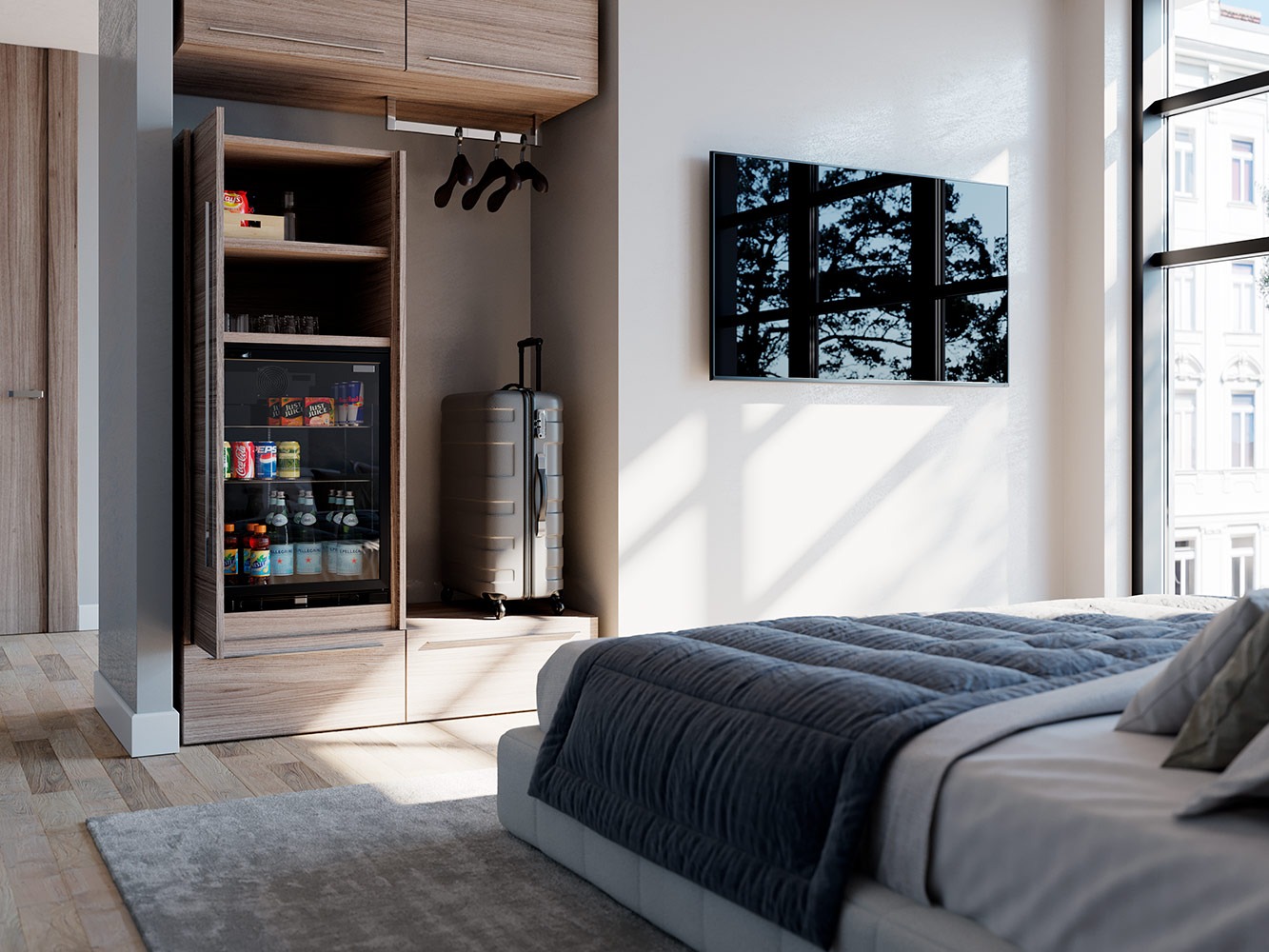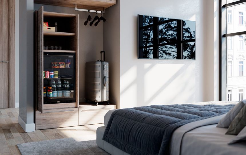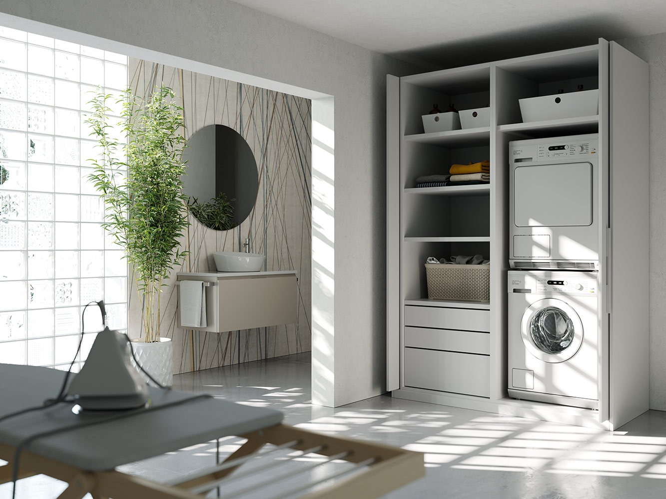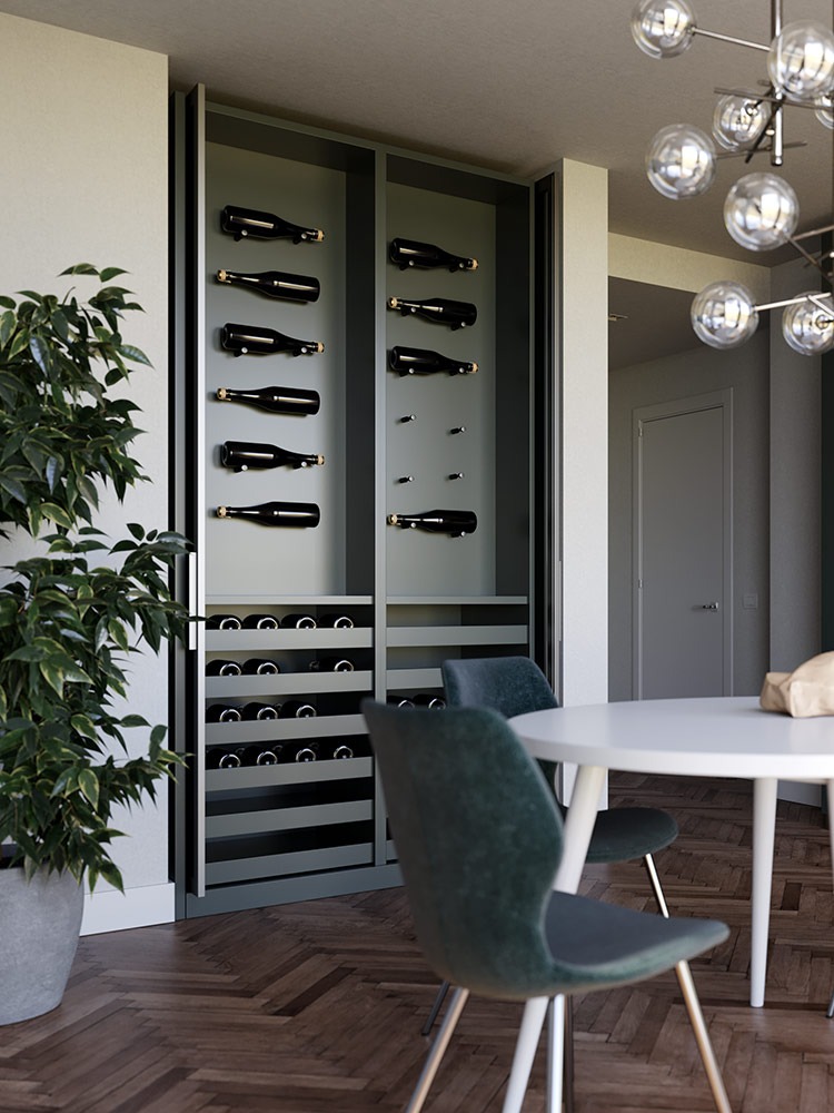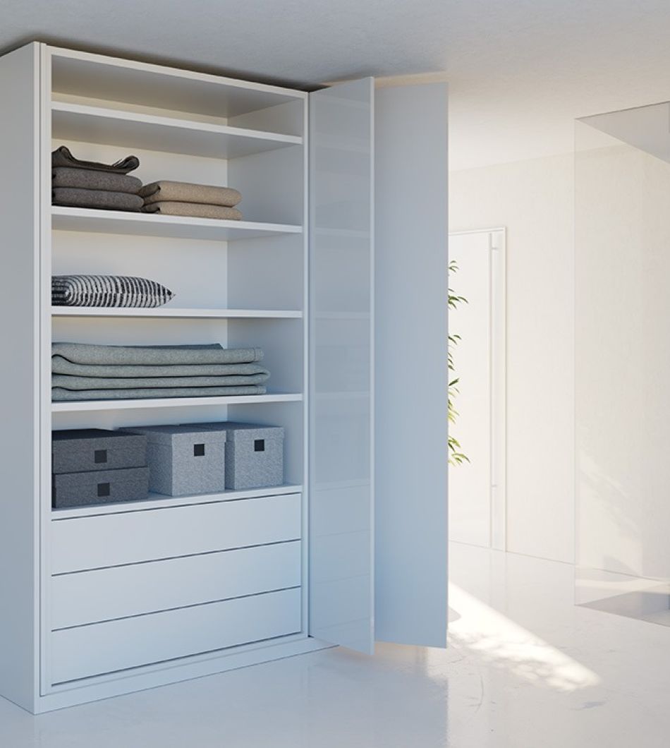 Exedra2 Smart verzija zahtijeva manju dubinu ormara; rubovi vrata ostaju vidljivi kada su sklopljena u svoj pretinac.