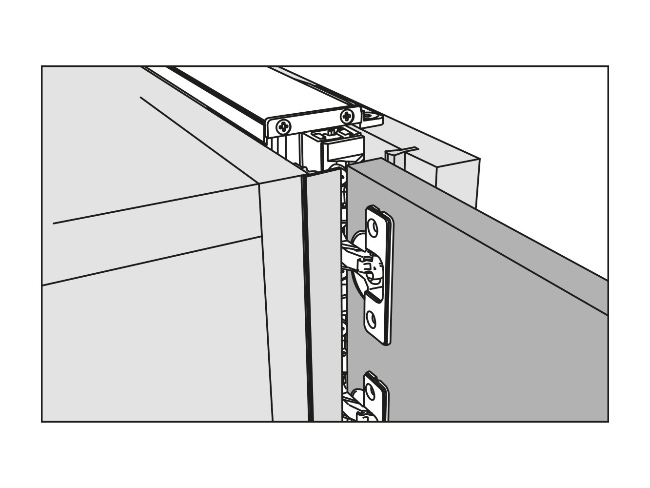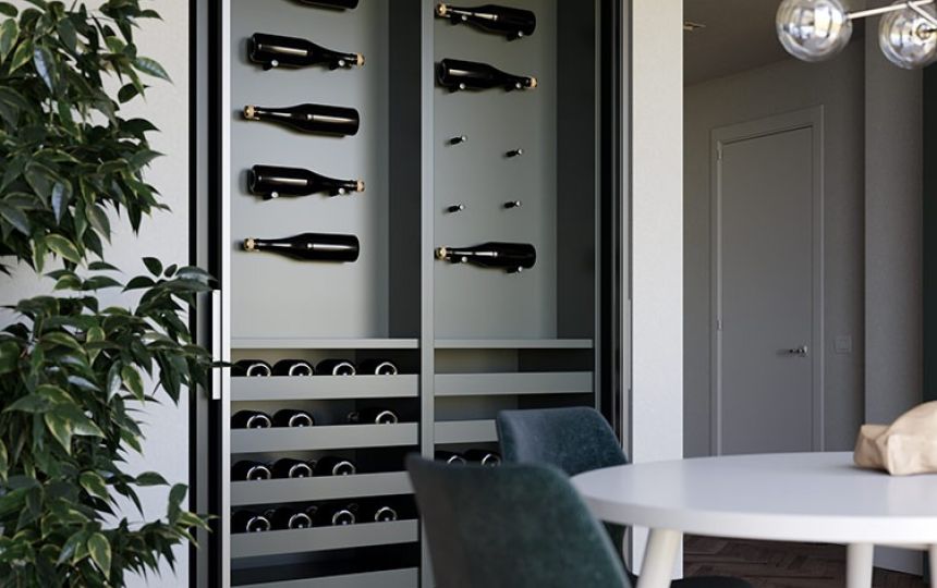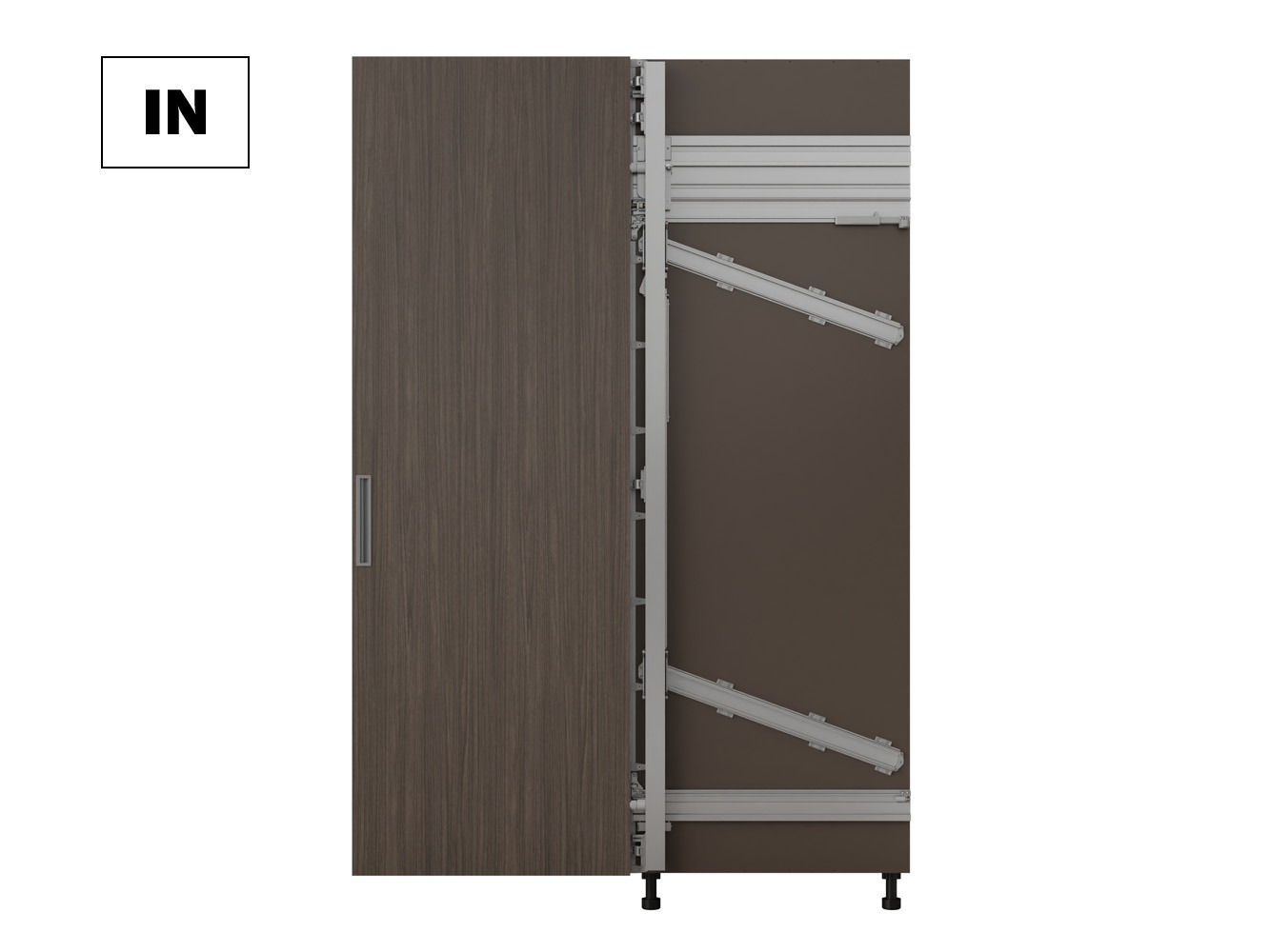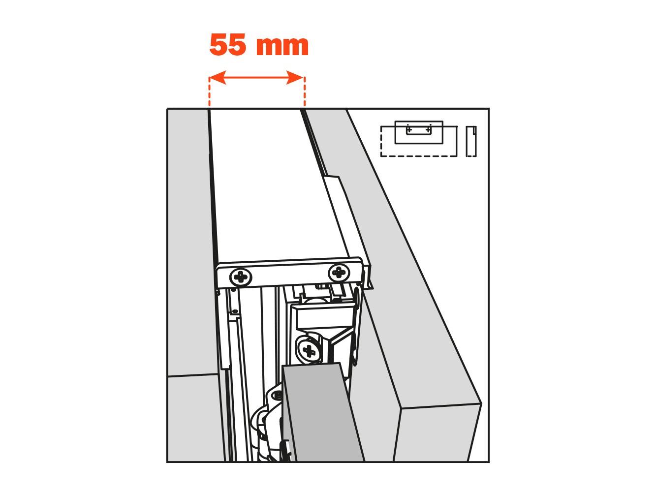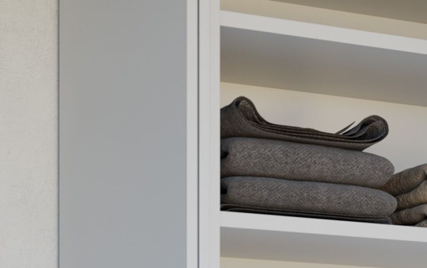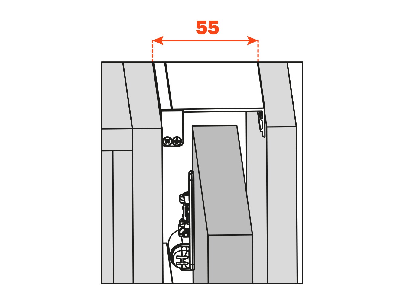 Vrata se u potpunosti uvlače u kućište kada su otvorena, osiguravajući praktičnost i diskretnost. Svaki pokret je potpomognut, što omogućuje precizno i skladno klizanje. Skriveni klizni mehanizam, smješten u kućište širine 55 mm, omogućuje jednostavno podešavanje i pristup bez potrebe za rastavljanjem ormara. Montaža na bočnu stranicu ormara izvodi se u nekoliko jednostavnih koraka.