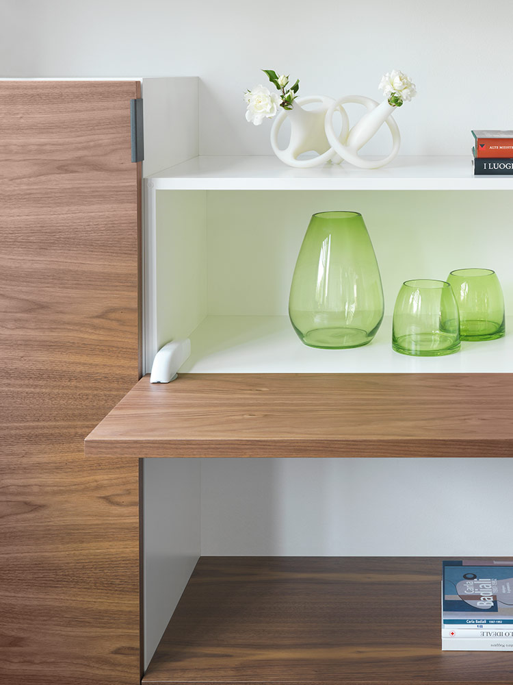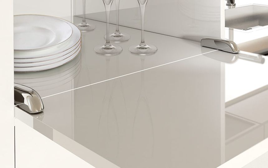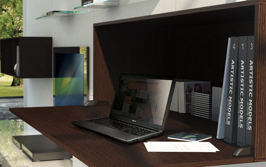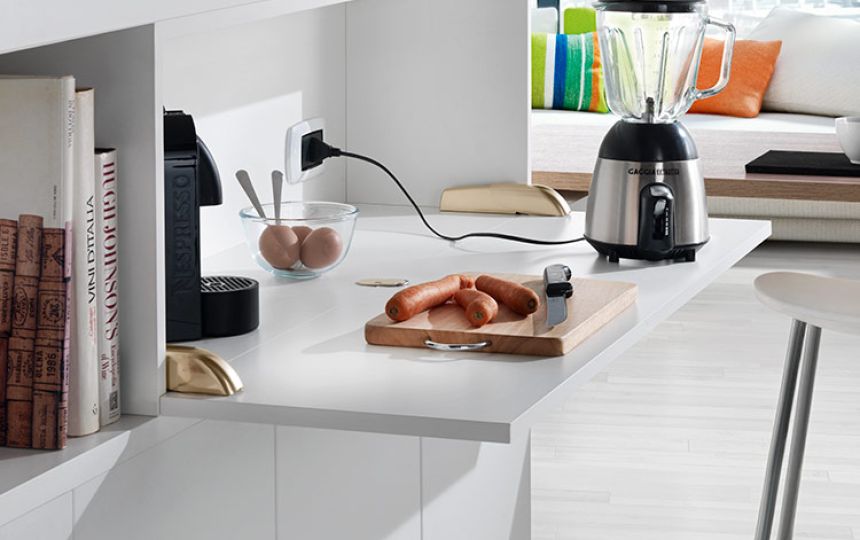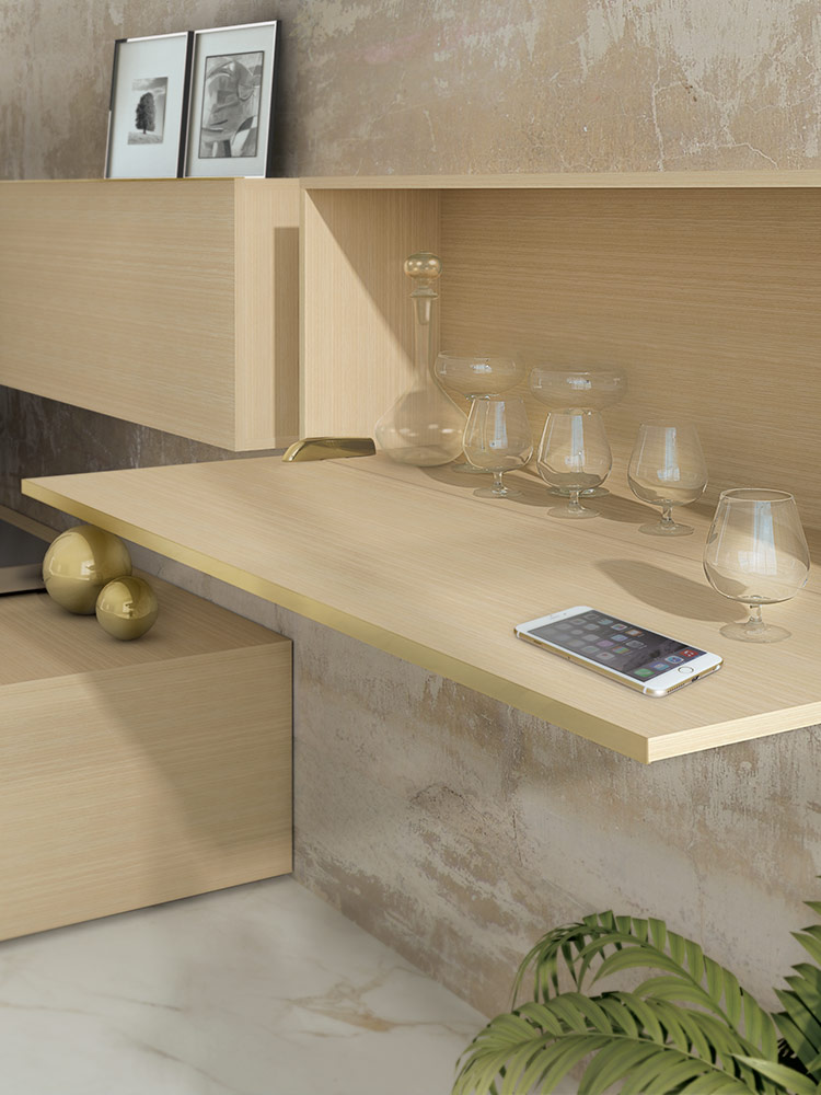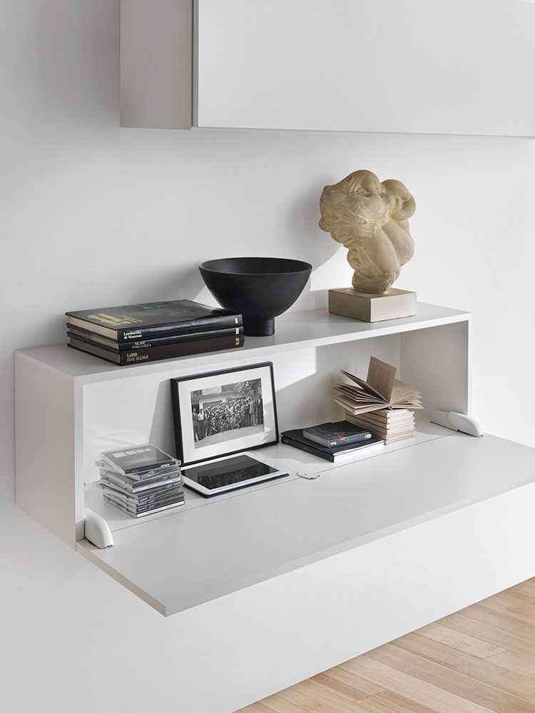 U potpuno otvorenom položaju, vrata i donja ploča su poravnati, stvarajući ravnu i ujednačenu površinu.