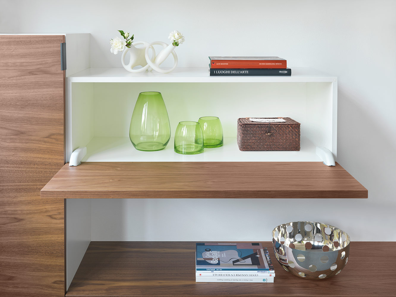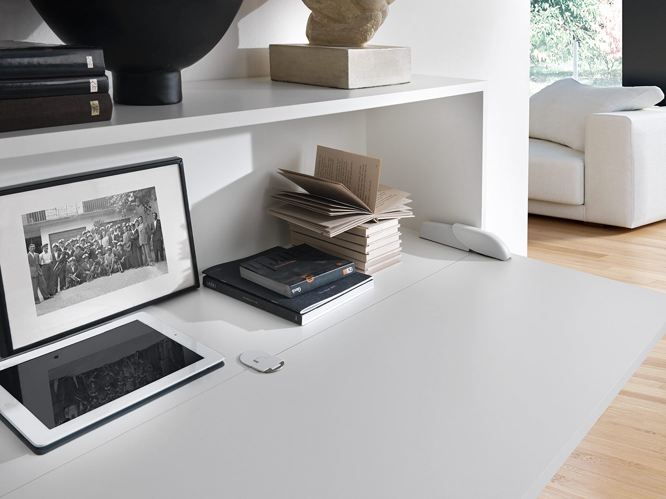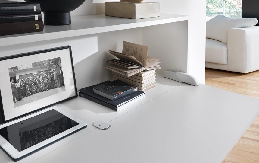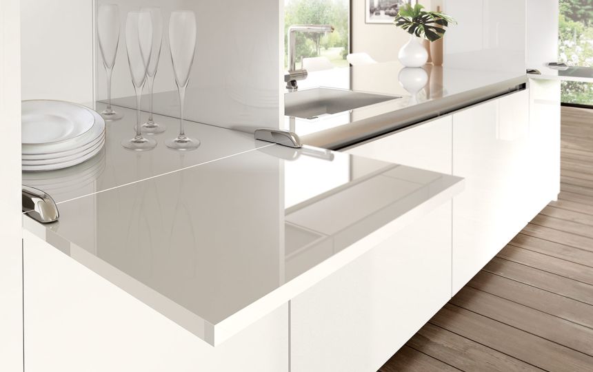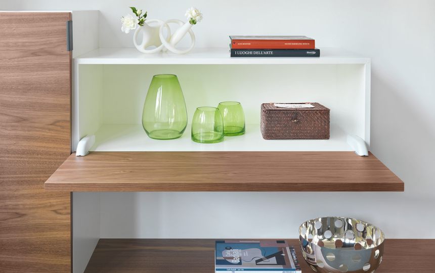 U potpuno otvorenom položaju, vrata i donja ploča su poravnati, stvarajući ravnu i ujednačenu površinu.